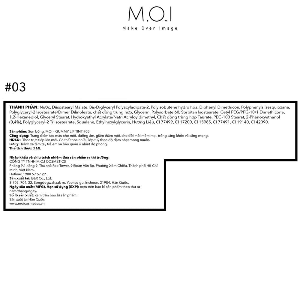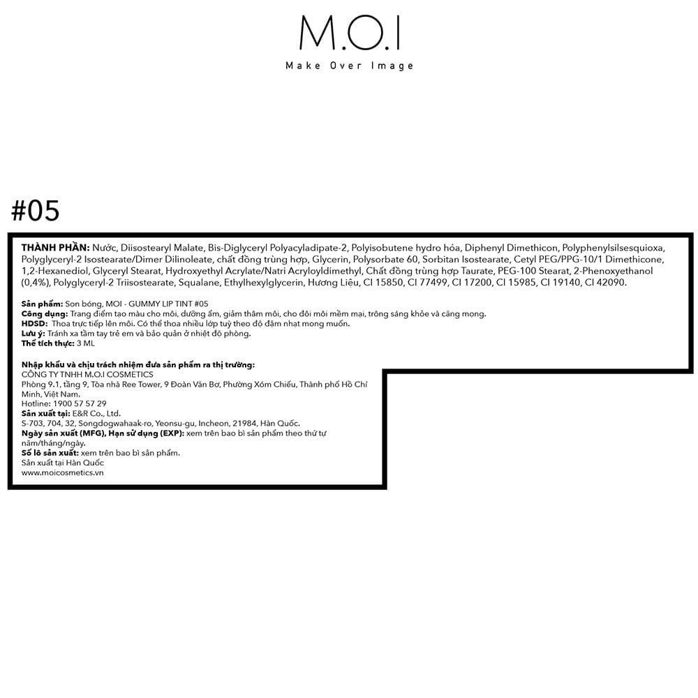 - Công ty chịu trách nhiệm nhập khẩu và phân phối độc quyền: CÔNG TY TNHH M.O.I COSMETICS