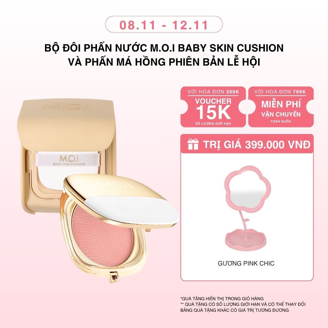 Bộ Đôi Phấn Nước M.O.I Baby Skin Cushion Và Phấn Má Hồng Phiên Bản Lễ Hội