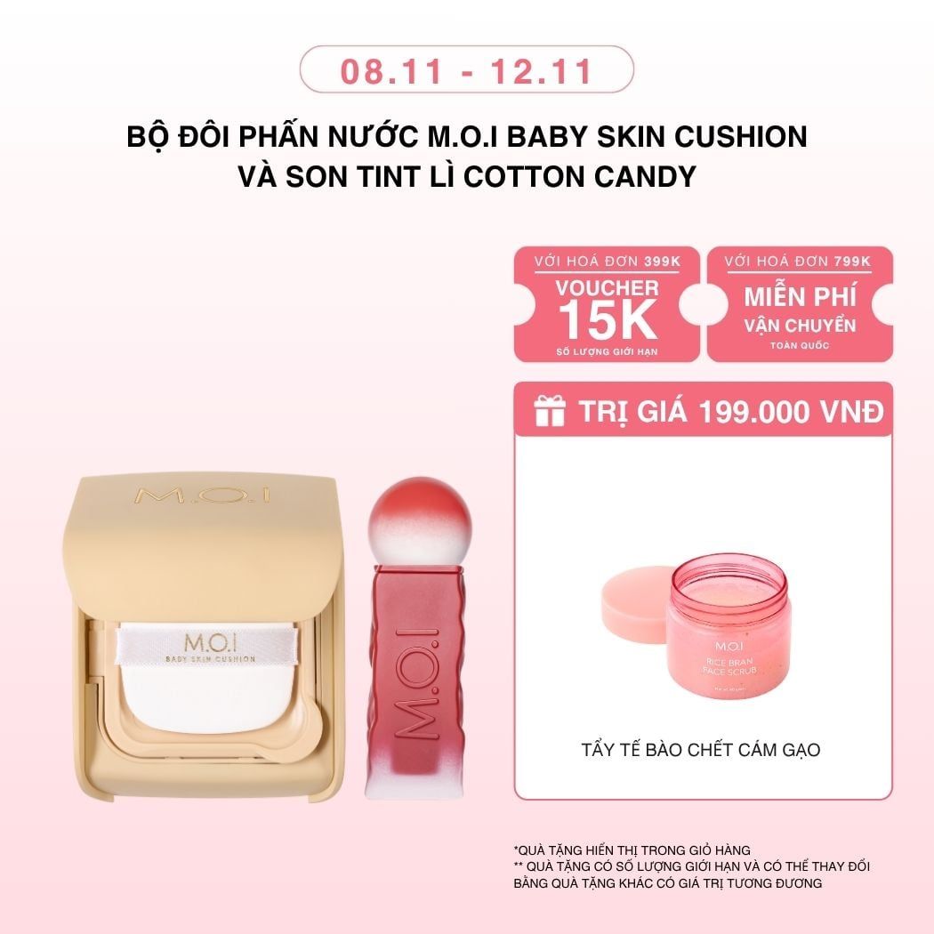 Tên sản phẩm: Bộ Đôi Phấn Nước M.O.I Baby Skin Cushion Và Son Tint Lì Cotton Candy