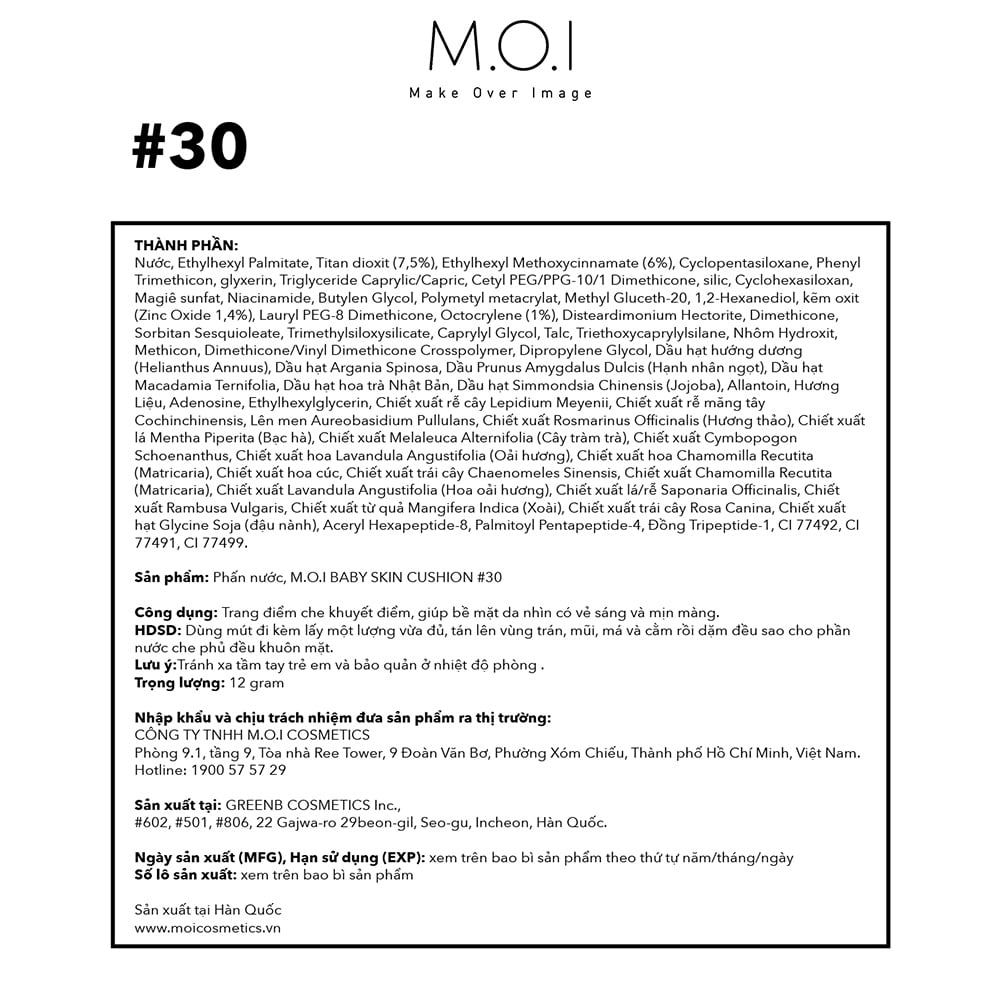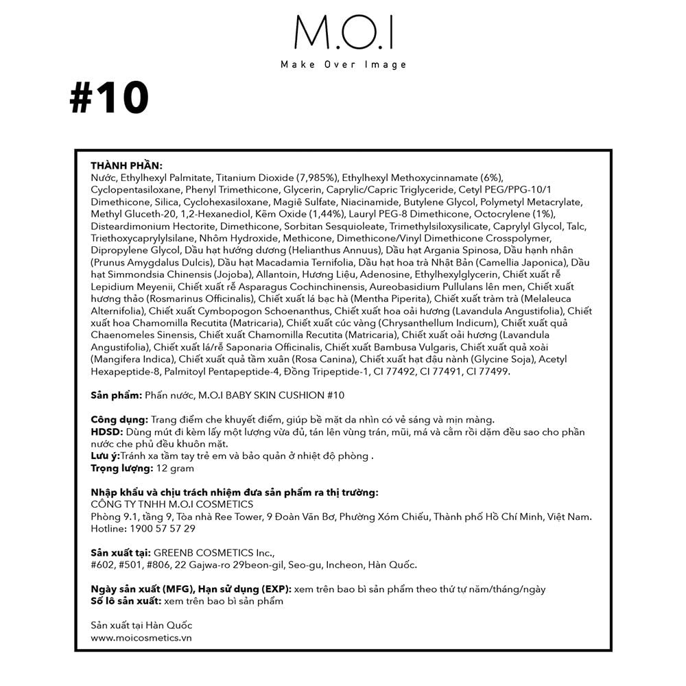 - Công ty chịu trách nhiệm nhập khẩu và phân phối độc quyền: CÔNG TY TNHH M.O.I COSMETICS