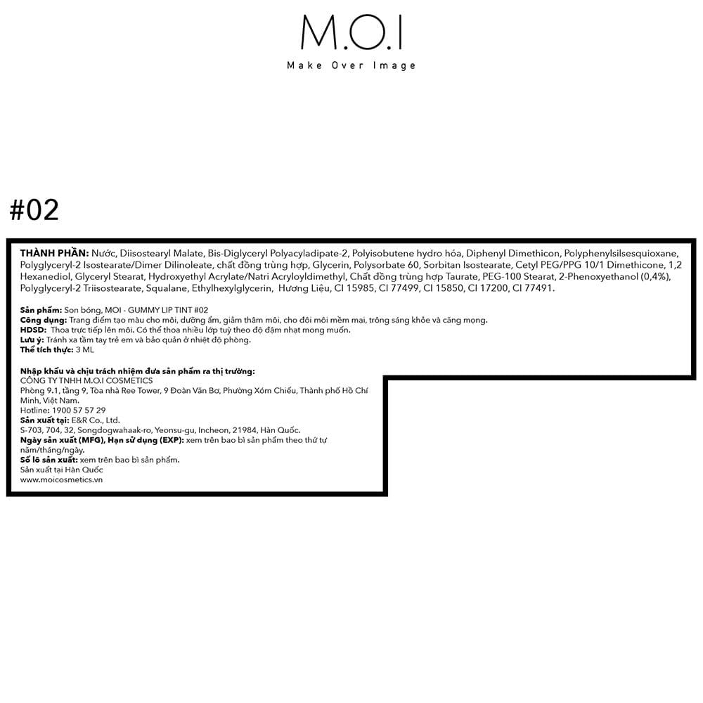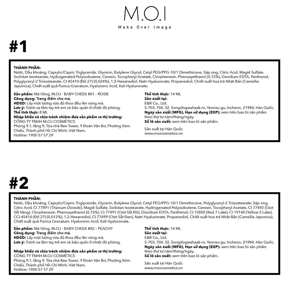 - Công ty chịu trách nhiệm nhập khẩu và phân phối độc quyền: CÔNG TY TNHH M.O.I COSMETICS