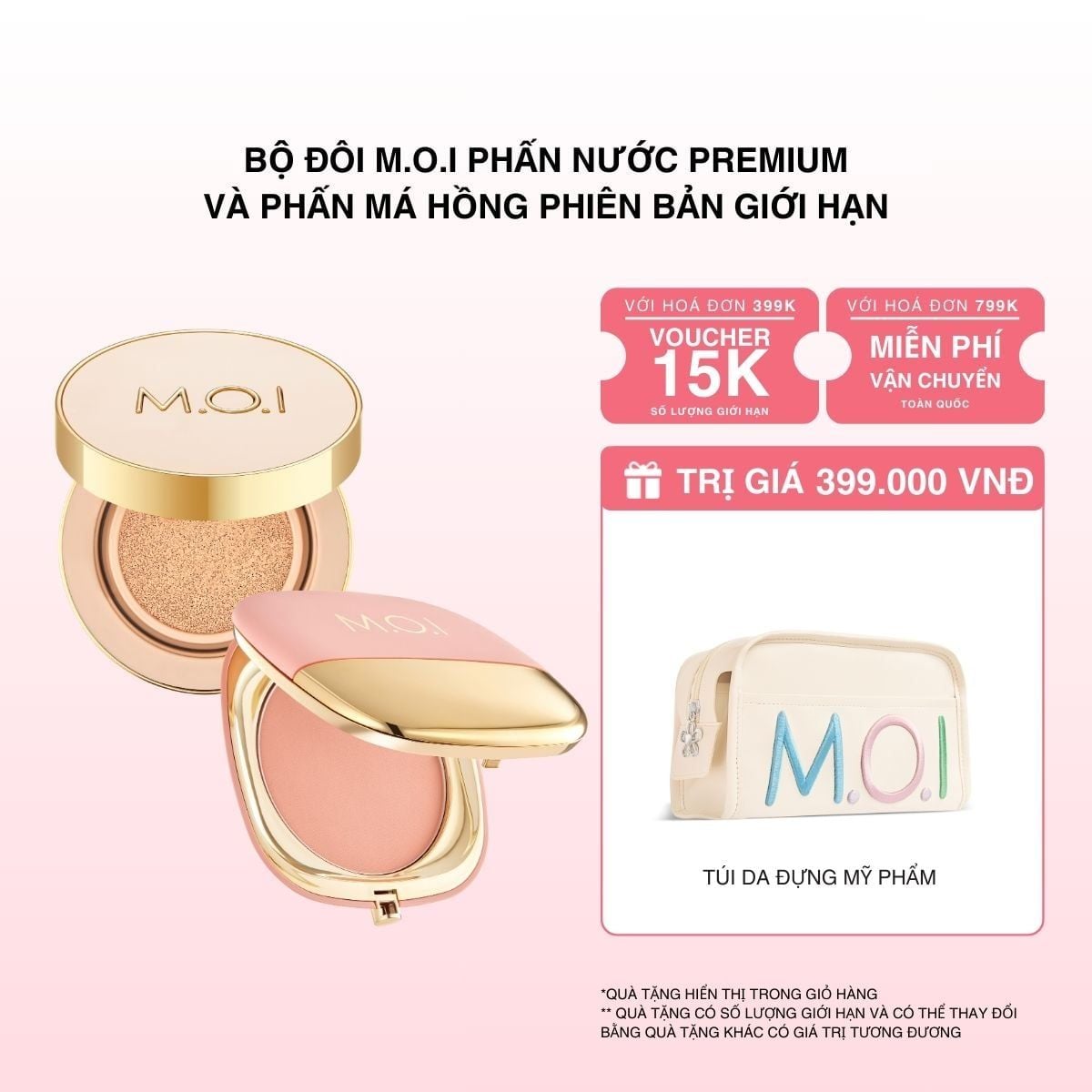 Bộ Đôi M.O.I Phấn Nước Premium Và Phấn Má Hồng Phiên Bản Giới Hạn