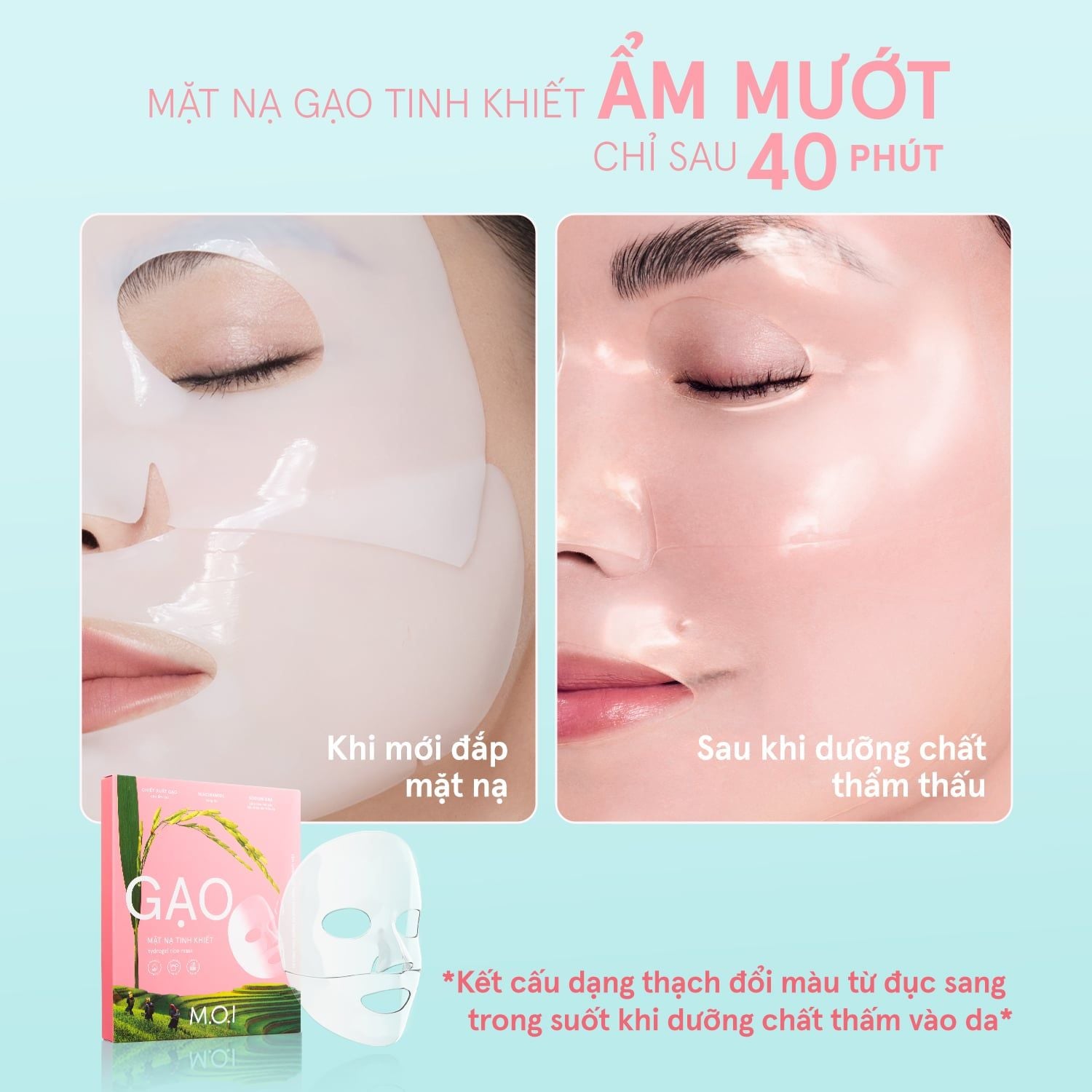 Nâng cấp từ dòng Mặt Nạ Hydrogel nổi tiếng của nhà M.O.I - phiên bản Mặt Nạ Gạo Tinh Khiết mới nhất cho bạn trải nghiệm thư giãn & làm đẹp căng mướt, độc đáo. Làn da sẽ được bảo vệ & cấp dưỡng sâu nhờ công nghệ mặt nạ tiên tiến kết hợp với bí quyết chăm sóc da truyền thống lấy cảm hứng từ gạo của người Việt qua hàng trăm năm.